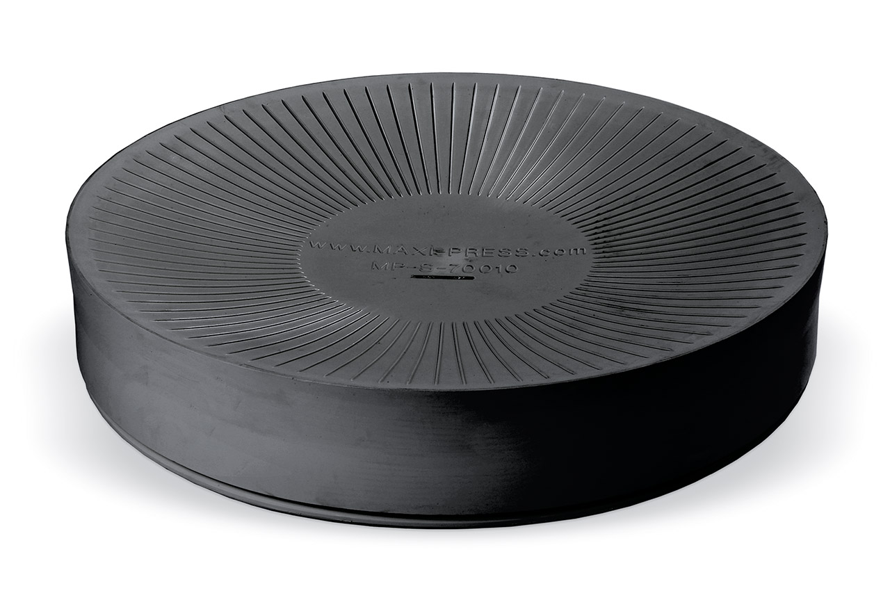 POWER Membrane in schwarzem, eigens entwickelten Naturkautschuk (NR) mit verstärkendem Stahlgerüst im Umlauf der Membrane. Besonders zu Empfehlen bei Hochdruckpressen als auch bei Pressen mit ungleicher Postenverteilung und speziell bei der Pressung von Handtuchrollen.