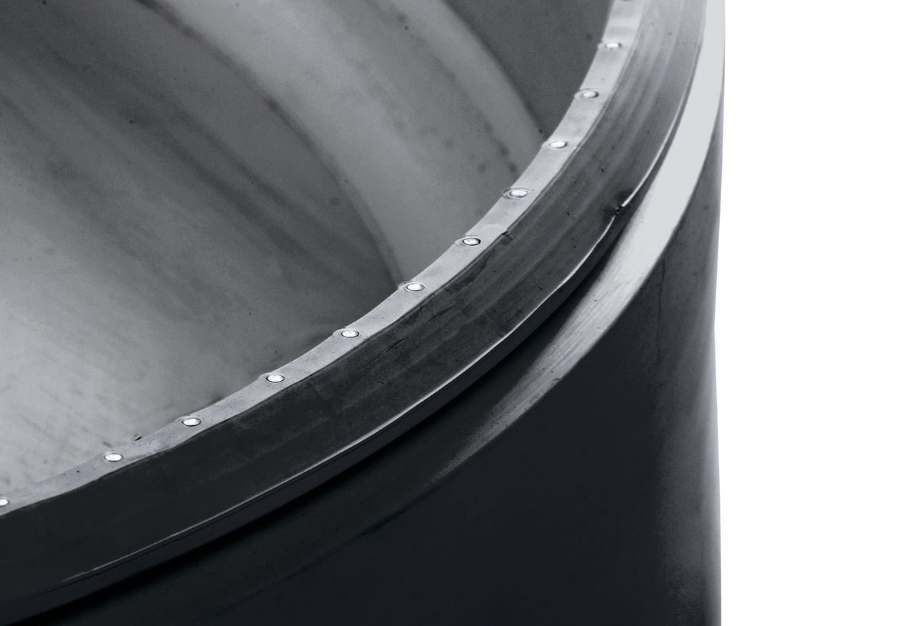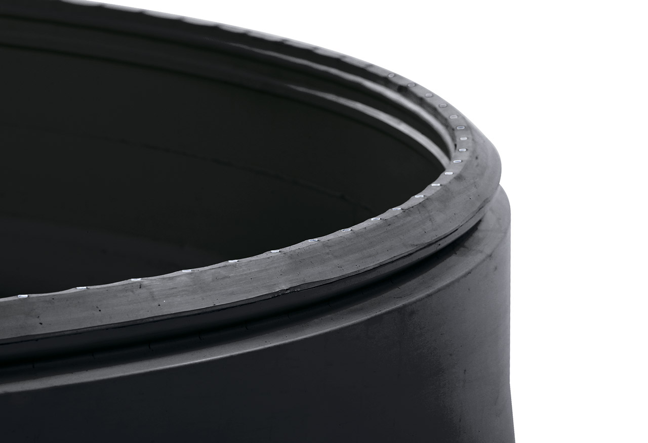 - Verstärkendes Stahlgerüst im Umlauf der Membrane