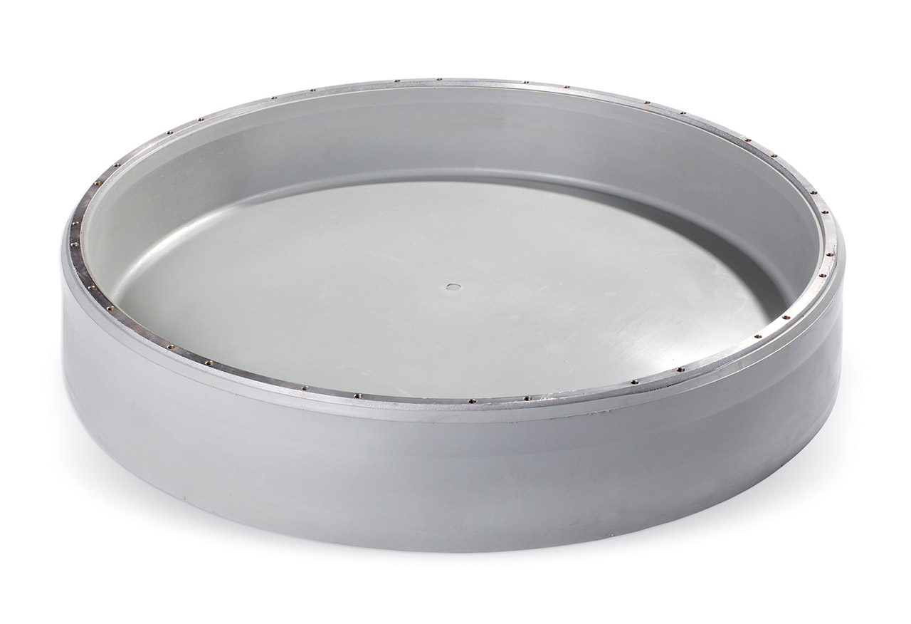 HIGH TEC Membrane in grauem, eigens entwickelten Naturkautschuk (NR) mit Ring aus Edelstahl und strahlenförmiger TOUCH Pressfläche. Die Membrane ist abriebfrei. Eine Verschmutzung der Wäsche wird somit vermieden. Die strahlenförmige TOUCH-Pressfläche minimiert das Verkleben der Wäsche an der Membrane.