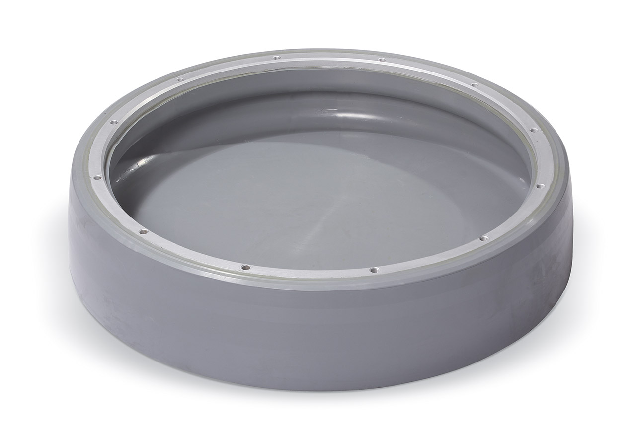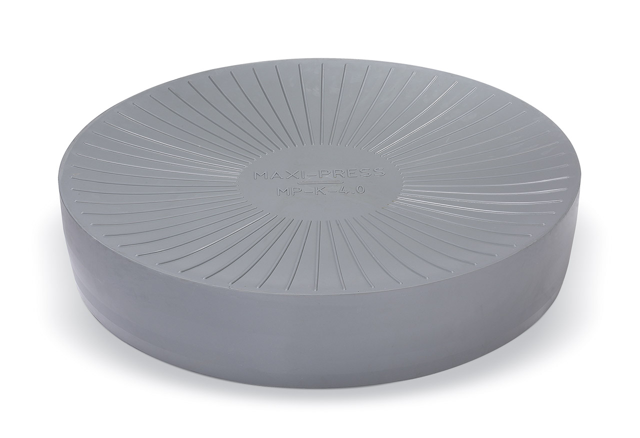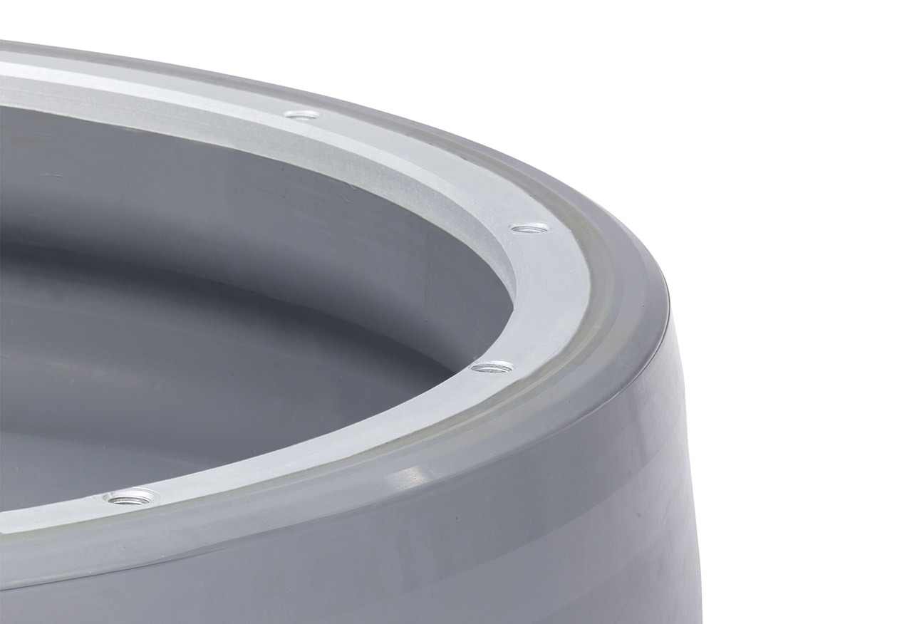 EASYFIX Membrane in grauem Naturkautschuk (NR) mit einvulkanisiertem Befestigungsring. Die Montage erfolgt ohne zusätzlichen Befestigungsring direkt an die Stempelplatte und spart so 80% der Montagezeit und die Kosten für die bei Standardmembranen benötigten Befestigungsringe.