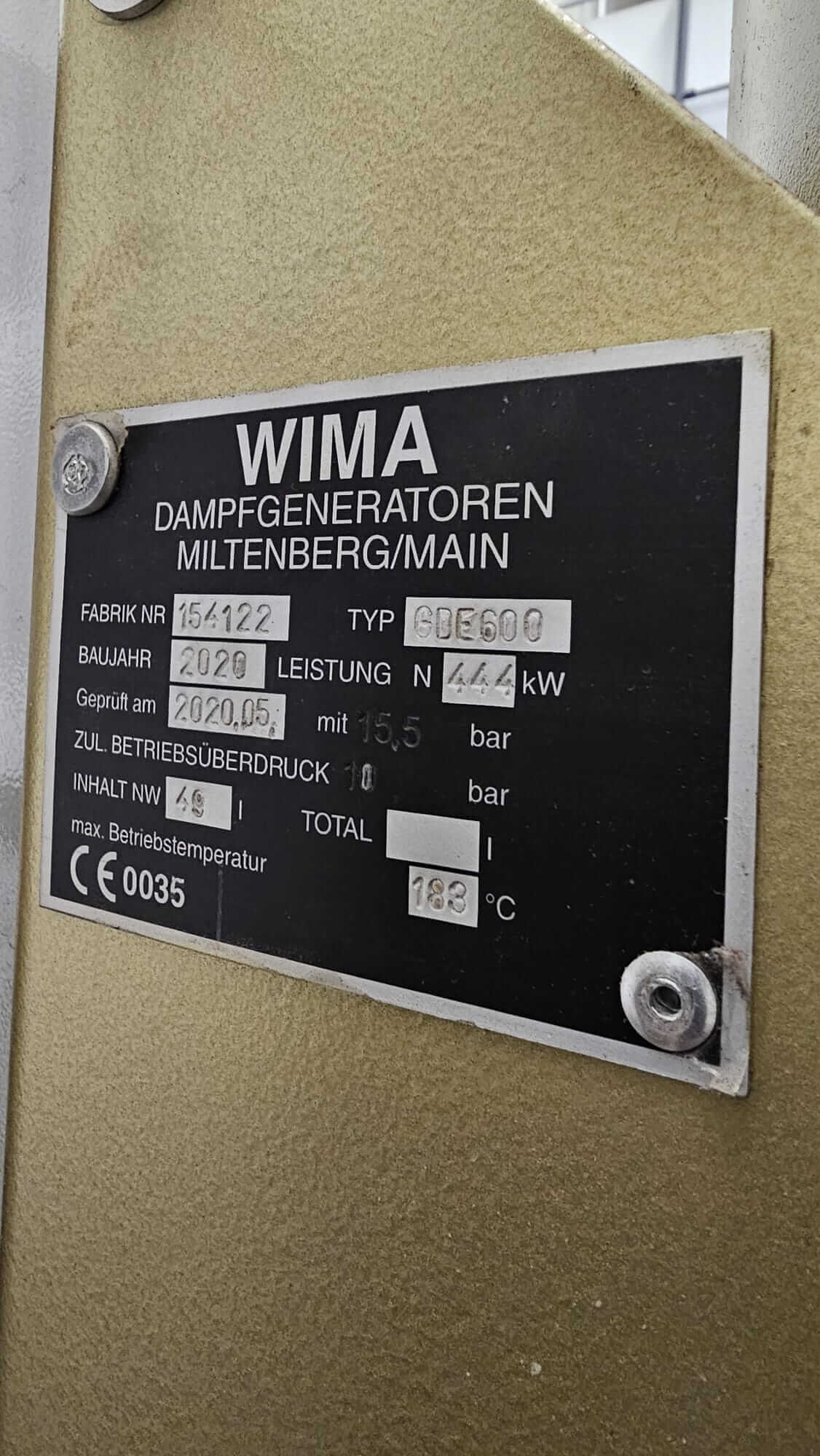 WIMA Dampferzeuger GDE 600 inklusive Pumpen