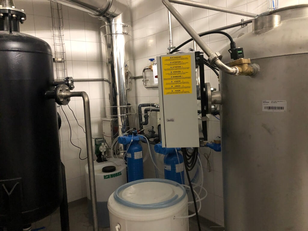 Gebrauchter Certuss Universal 600 TC gasbefeuerter Dampferzeuger (600 kg/h) mit Certuss CVE 600 TC Kompaktanlage / Versorgungseinheit Die Anlage wurde insgesamt ca. 5 Stunden betrieben und es wurden lediglich 9 m³ Wasser eingespeist. Zum Angebot gehört folgendes gebrauchtes Equipment: 1x Certuss Universal TC Gasbefeuerter Dampferzeuger, 600 kg/h, Baujahr: 2020 Min. / max. Betriebsdruck: 0,6 MPa (6 bar) / 0,8 – 3,0 MPa (8 – 30 bar) Max. zulässiger Überdruck: 1,0 – 3,2 MPa (10 – 32 bar) Heizleistung: 394 kW Nennleistung: 436 kW 1x Speisewassertank aus Edelstahl (isoliert) 1x Dampf-Einspritzheizsystem 1x Elektronischer Niveauregler für den Speisewassertank 1x Abschlammvorrichtung aus Edelstahl 1x Probenkühler aus Edelstahl 1x Druckerhöhungspumpe mit Steuerung 1x Dampfabcheider mit Kondensatableiter-Set 1x Wasserenthärter 1x Wasserzähler 1x Wasserfilter 1x Chemikaliendosierbehälter mit Pumpe CVE Kompaktmodul, Baujahr: 2020Automatische Start-/Stopp-/Abschlammfunktion